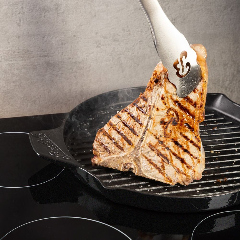 Gebruik & onderhoud: vereist voorzichtig handmatig reinigen en periodiek invetten met olie om het antiaanbakoppervlak te behouden