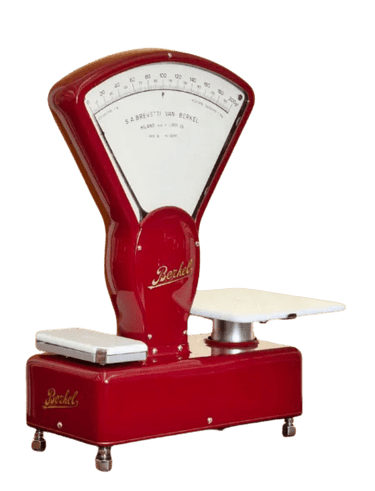 Tämä aito Berkel-vaaka, jonka enimmäiskapasiteetti on 1 kg, on kunnostettu asiantuntevasti Italiassa. Vaaka on toteutettu klassisen Berkelin punaisella värillä, jossa on mustia ja kultaisia korostuksia, ja siinä on etu- ja takasivun asteikot, jotka näyttävät selvästi painon. Kiillotettu, irrotettava asteikko ja säädettävät jalat tekevät käytöstä helppoa ja käytännöllistä.