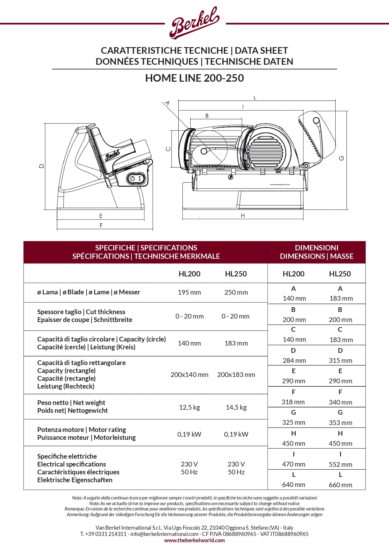 Berkel International, som grundades 1898 i Nederländerna, har mer än 100 års erfarenhet av skärmaskiner för den professionella industrin. På 1950-talet var Berkel inte bara en innovativ och bekväm produkt, utan också en statussymbol. Än idag tillverkar Berkel de finaste Flywheel-skärmaskinerna, men har utökat sitt sortiment till att omfatta elektriska skärmaskiner, moderna knivar och vakuummaskiner.